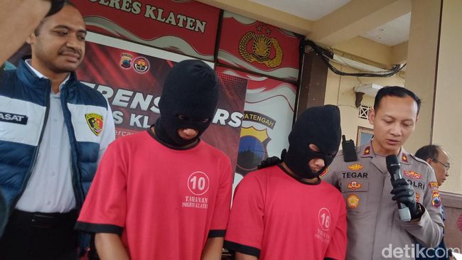 Keduanya dihadirkan dalam konferensi pers di Mapolres Klaten, Senin (24/6/2024) siang. Dalam konferensi pers yang dipimpin Wakapolres Kompol Tegar Satrio Wicaksono tersebut, kedua tersangka ditutup sebo.