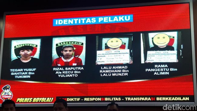 Keempat tersangka ini juga dihadirkan dalam konferensi pers di Mapolres Boyolali sore tadi. Keempat tersangka yakni TB (19), RS (19), RM (17), dan LAR (16).