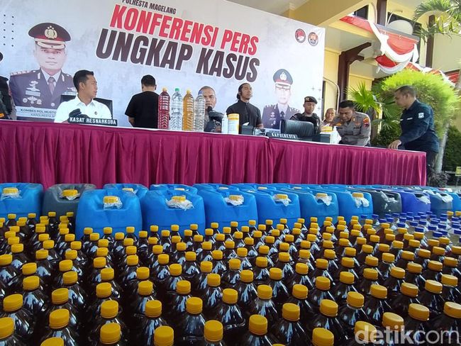 "Ciu rasa ketan hitam jumlah 27 plastik, per plastik ada 11 botol dengan jumlah total 297 botol. Ciu bening dengan jumlah 3 botol, ciu gedang kluthuk kuning dengan jumlah total 109 botol," kata Kapolresta Magelang Kombes Mustofa saat konferensi pers di Polres Magelang, Senin (5/8/2024).