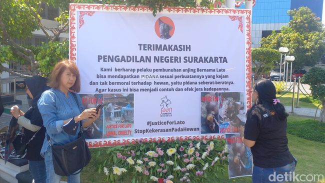 Anjing yang dibunuh bernama Lato. JAAN datang dengan membawa karangan bunga yang ditempatkan di halaman PN Solo. Dalam karangan bunga itu, terdapat foto Lato, serta tulisan 'TERIMAKASIH PENGADILAN NEGERI SURAKARTA. Kami berharap pelaku pembunuhan anjing Bernama Lato bisa mendapatkan PIDANA sesuai perbuatannya yang kejam dan tak bermoral terhadap hewan, yaitu pidana seberat-beratnya. Agar kasus ini bisa menjadi contoh dan efek jera kedepannya'.