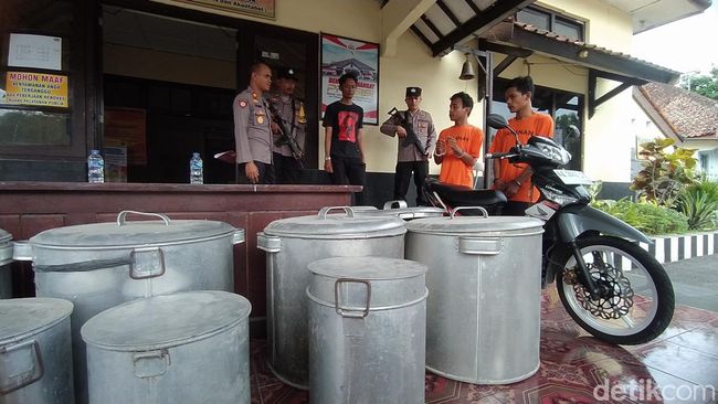 "Kami dari Polsek Muntilan melaksanakan cek TKP, olah TKP dan berhasil menemukan dua pelaku yang melarikan diri, Selasa (1/10) pagi di rumahnya masing-masing. Kita bawa ke Polsek Muntilan untuk proses lebih lanjut. Barang bukti yang bisa kita amankan adalah 12 panci dandang yang berukuran berbagai macam," imbuhnya.