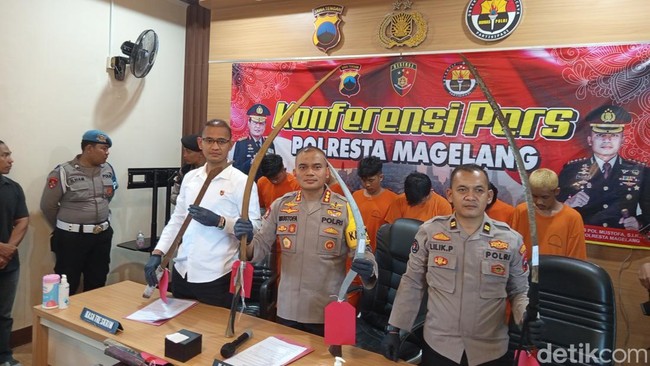 "Tersangka ada 10, namun satu masih DPO. Peristiwa ini bermula dari tantang-tantangan antara dua kelompok geng," kata Kapolresta Magelang Kombes Mustofa dalam konferensi pers di Ruang Media Center Polresta Magelang, Senin (30/12/2024).
