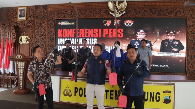 Resmob Reskrim Polres Temanggung dan Reskrim Polsek Pringsurat menangkap 4 tersangka pelaku tawuran antargeng. Polisi juga mengamankan 22 senjata tajam (sajam) dengan berbagai jenis dan ukuran.