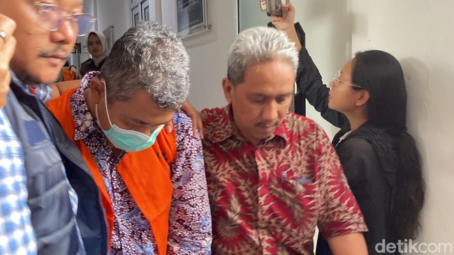 Setelah dua jam berada di ruang pemeriksaan, mereka keluar menggunakan rompi oranye. Ketiganya dinyatakan ditahan selama 20 hari ke depan.