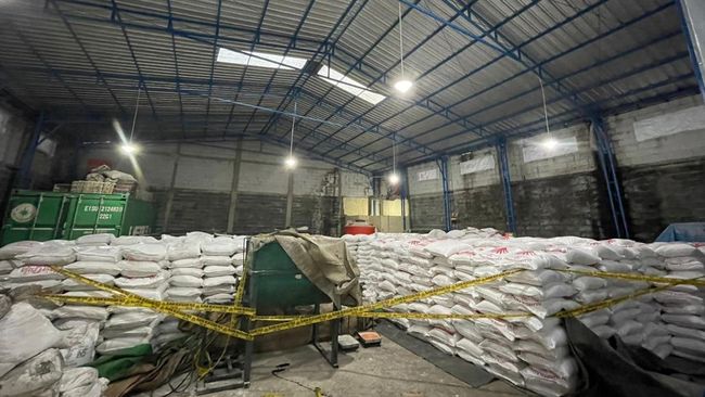 Dari foto yang diperoleh detikJateng, seribuan sak atau karung berisi gula itu diletakkan dalam sebuah gudang. Garis kuning polisi juga terlihat sudah terpasang.