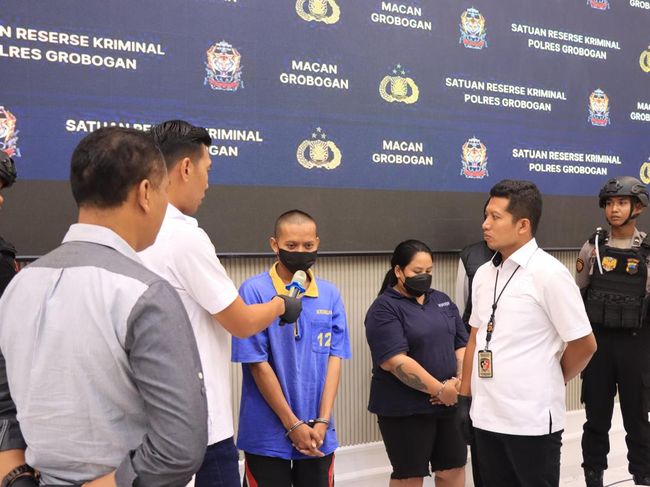 Tersangkanya yaitu Komarudin (31), seorang pria asal Jawa Barat dan istri sirinya, Mariska (32) seorang wanita warga Palembahan, Purwodadi, Grobogan. Mereka dihadirkan dalam jumpa pers di Mapolres Grobogan dan mengakui perbuatannya di depan media.