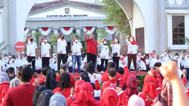Pemerintah Kota Semarang menggelar acara pembukaan peringatan HUT RI ke-77 dengan serangkaian acara. Di momen itu, Wali Kota Semarang Hendrar Prihadi mengingatkan agar warganya segera booster.