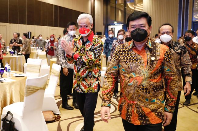 Kementerian Agraria dan Tata Ruang/Badan Pertanahan Nasional (ATR/BPN) RI menggelar rapat koordinasi bersama jajaran kepala daerah, aparat penegak hukum dan badan peradilan Jawa Tengah terkait penyelenggaraan reforma agraria. Menteri ATR/BPN Hadi Tjahjanto dan Gubernur Jawa Tengah Ganjar Pranowo hadir dalam rapat yang berlangsung Rabu (28/9/2022) itu.