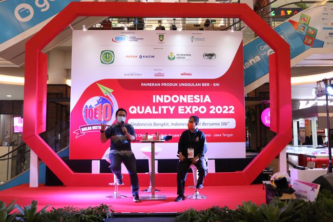 Sebagai informasi, IQE digelar di Solo pada 6-9 Oktober 2022. Di indonesia Quality Expo dipamerkan berbagai produk ber-SNI dari berbagai industri besar beserta UKM binaannya. Terdapat ada 16 perusahaan yang bergabung. Begitu juga produsen-produsen yang menjadi pelopor ber-SNI di bidangnya masing-masing, mulai dari bahan bangunan hingga moda kendaraan dengan energi alternatif (ekosistem mobil listrik).