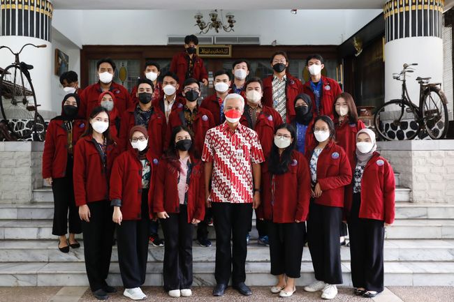 Gubernur Jawa Tengah, Ganjar Pranowo menerima kunjungan mahasiswa yang tergabung di Paduan Suara Fakultas Teknik Universitas Diponegoro (PSMT Undip) Semarang.