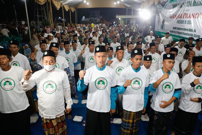 Relawan Santri Dukung Ganjar (SDG) menjaring aspirasi ratusan santri, pengasuh pondok pesantren, dan ulama se-Kabupaten Cilacap untuk mendukung Ganjar Presiden 2024. Konsolidasi ini dilakukan di sela 'Gema Selawat dan Doa Bersama untuk Negeri' pada Pondok Pesantren Bahrus Shofa, Adipala, Kabupaten Cilacap, Jateng.