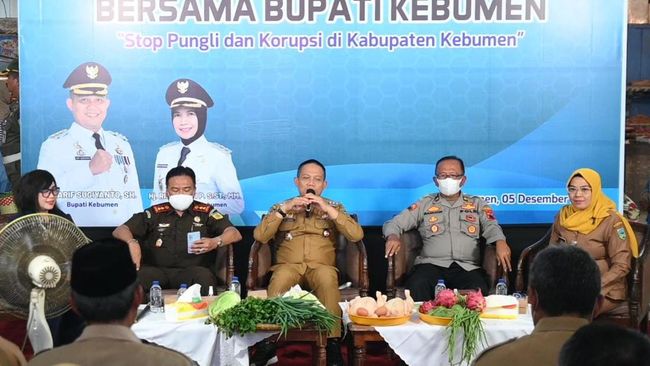Dialog diikuti para kepala desa dan pedagang pasar dengan menghadirkan tiga narasumber yakni Bupati Kebumen Arif Sugiyanto, Kepala Kejaksaan Negeri Kebumen Fajar Sukristyawan, serta Kepala Bagian SDM Polres Kebumen Kompol Mawakir.