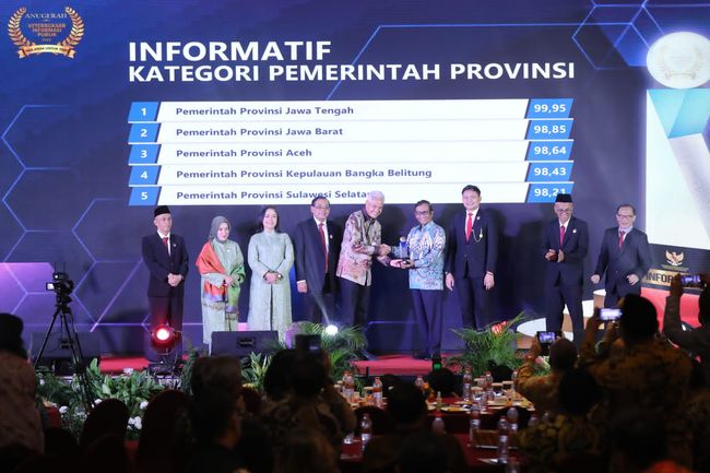 Pada tahun ini, Jateng menempati urutan pertama Badan Publik Informatif (BPI) kategori Provinsi dengan skor 99,95.