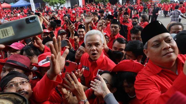 Gubernur Jawa Tengah Ganjar Pranowo turut menghadiri puncak perayaan HUT PDI Perjuangan. Setibanya di JIExpo Kemayoran, Jakarta Pusat, ia langsung disambut teriakan 'Ganjar Presiden'.