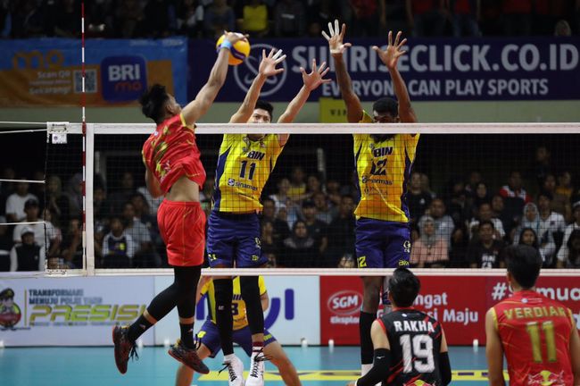 Tim voli putra Jakarta STIN BIN memastikan diri melangkah ke babak Final Four Proliga 2023. Hal itu usai anak asuh Alessandro Fadul mengatasi perlawanan Jakarta Bhayangkara Presisi dengan skor 3-0.
