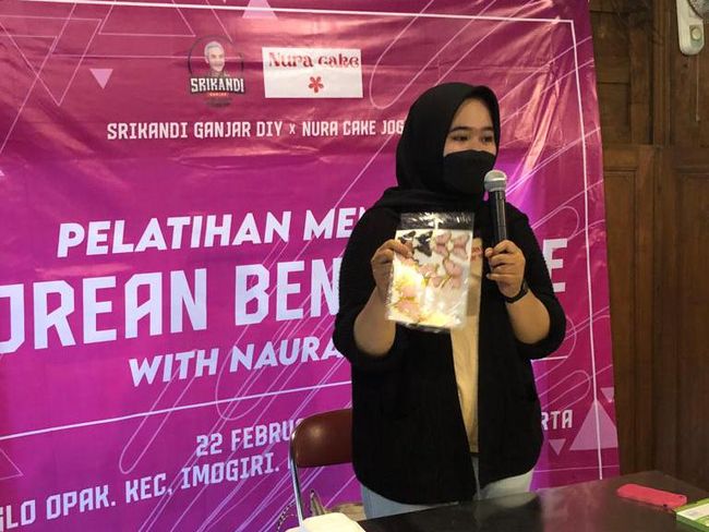 Relawan Srikandi Ganjar DIY berkolaborasi dengan Nuta Cake Jogja menggelar pelatihan Bento Cake Class untuk milenial di Singosaren, Wukirsari, Kecamatan Imogiri, Kabupaten Bantul, Daerah Istimewa Yogyakarta. Pelatihan bertujuan untuk melatih milenial lebih kreatif.