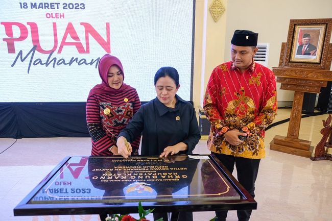 Sebagai informasi, setelah meresmikan Grha Bung Karno secara seremoni, Puan membubuhkan tanda tangan pada prasasti gedung tersebut bersama Bupati Klaten Sri Mulyani dan Ketua DPRD Klaten Hamenang Wajar Ismoyo, kemudian memotong tumpeng.