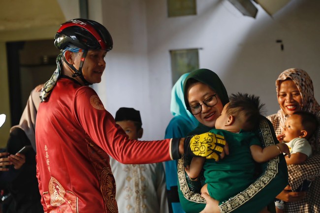 Pada kesempatan itu, Ganjar menyalurkan bantuan sambil menggowes sepedanya dari rumah dinas Puri Gedeh. Ganjar yang juga hobi gowes itu bersepeda menuju Panti Asuhan Fafirruu Ilallah sekitar pukul 16.00 WIB.