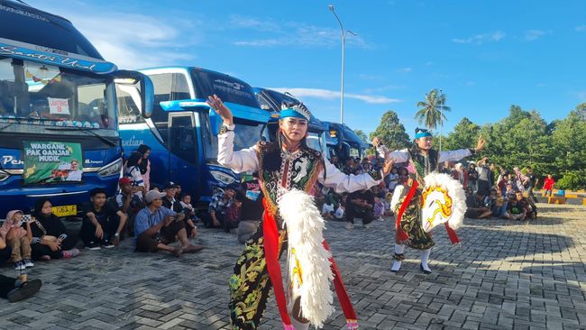 Iwoek menambahkan dalam acara pelepasan tersebut, area parkir rest area KM 20B Bandar Lampung dipenuhi bus dengan spanduk bertuliskan 'Wargane Pak Ganjar Mudik'. Tampak sejumlah penari jaranan berlenggak-lenggok di bawah terik matahari, diiringi musik gamelan.