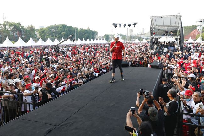 Gubernur Jawa Tengah sekaligus bakal calon presiden 2024 Ganjar Pranowo menemui ribuan pendukungnya di Kota Semarang. Dalam acara bertajuk 'Ganjar Pranowo Festival' itu, Ganjar menyapa para pendukungnya sambil lari pagi dari Puri Gedeh menuju Pusat Rekreasi dan Promosi Pembangunan (PRPP) Kota Semarang.