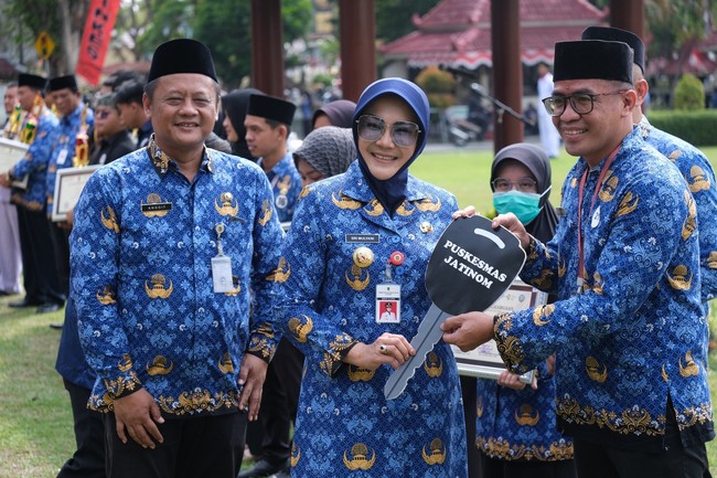 Pemerintah Kabupaten (Pemkab) Klaten menggelar upacara peringatan Hari Kesehatan Nasional (HKN) ke-59 di halamanan Pendapa Ageng Kabupaten Klaten, Minggu (12/11). Upacara tersebut diikuti perwakilan tenaga kesehatan (nakes) se-Kabupaten Klaten.