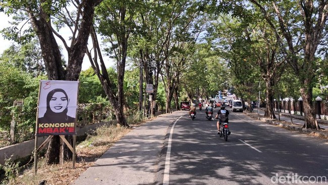 Dari pantauan detikJateng, Rabu (10/7/2024), poster tersebut bergambar sosok Bupati Demak Eisti'anah dengan warna siluet. Poster tersebut berukuran sekitar 1 x 0,5 meter bertuliskan 'Koncone Mbake' dan 'Demak Istimewa'.