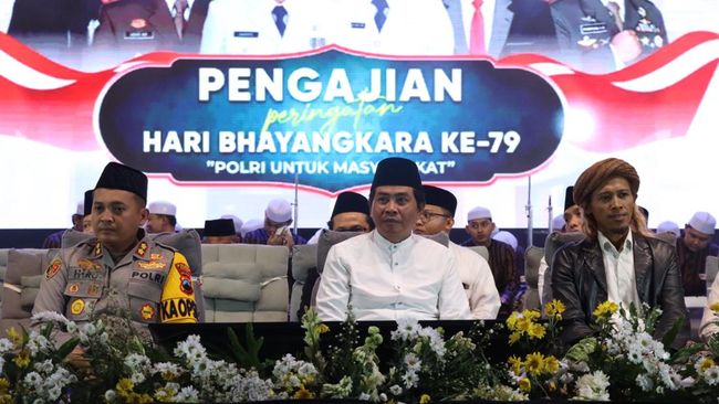 Polres Kudus menggelar pengajian umum akbar yang berlangsung khidmat dan semarak di Alun-Alun Simpang 7 Kudus semalam. Pengajian ini dalam rangka Hari Bhayangkara ke-79.