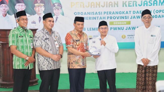 Hal itu disampaikan Ketua PWNU Jateng, Abdul Ghaffar Rozin, usai penandatanganan kerja sama antara Setda Jateng dan Organisasi Perangkat Daerah (OPD) terkait dengan 18 lembaga PWNU Jateng di Kantor PWNU Jateng, Kota Semarang, Selasa (22/7/2025). Adapun penandatangan tersebut disaksikan langsung oleh Luthfi, Taj Yasin, Sekretaris Daerah Jateng Sumarno, Gus Rozin, dan tokoh lainnya.