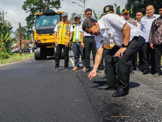 "Ini ruas preservasi jalan Parakan-Patean yang kita aspal ulang dua lapis sekitar 4,5 km," jelasnya.