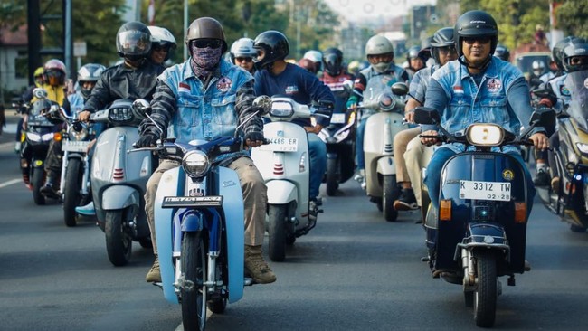 Luthfi mengendarai Honda Super Cub warna biru putih dan Gus Yasin mengendarai Vespa biru klasik. Sesampainya di lokasi mereka langsung disambut antusias warga.