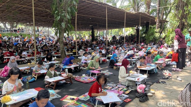 Adapun anak Wiwin, Farah (9), mengikuti lomba mewarnai. Wiwin mengatakan anaknya senang mewarnai sejak beberapa tahun lalu.