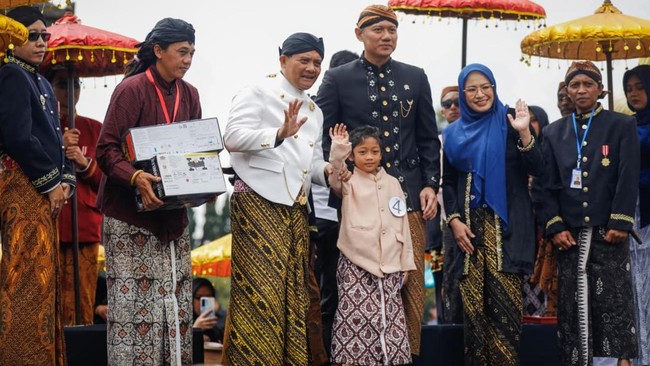 Gubernur Jawa Tengah (Jateng), Ahmad Luthfi, dan Menko Bidang Infrastruktur dan Pembangunan Kewilayahan (IPK), Agus Harimurti Yudhoyono (AHY), mengikuti tradisi cukur rambut gimbal atau anak bajang di Dieng Culture Festival (DCF) 2025, Banjarnegara. Luthfi menilai tradisi tersebut perlu dilestarikan dan diperbesar guna menarik turis mancanegara.