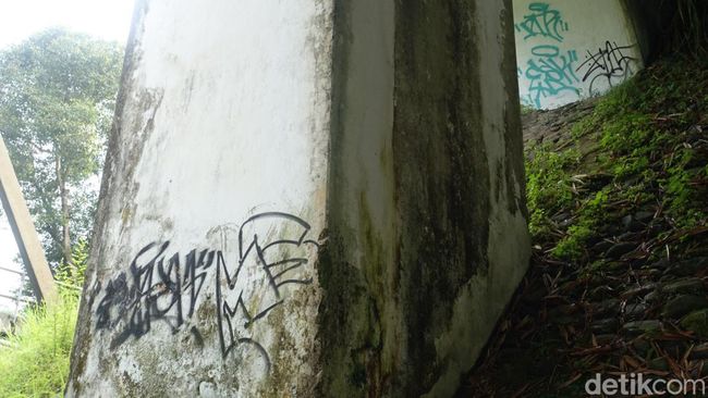 Pantauan detikJateng di lokasi BCB Dusun Pangukan, Tridadi, Sleman pada tiang penyangga sisi timur dan barat sudah penuh dengan coretan. Nampak ada tulisan SMZ, SNPL, C3BOL, dan lain sebagainya.