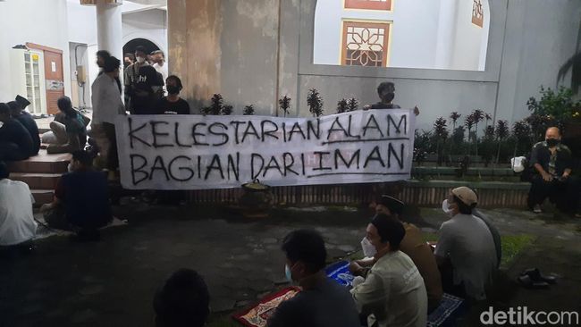 Pantauan detikJateng, spanduk putih 'KELESTARIAN ALAM BAGIAN DARI IMAN, GUSTI BERKAHI, dan #SAVE WADAS, itu ditulis dengan cat semprot hitam. Spanduk itu sepanjang sekitar lima meter itu dibentangkan di sisi utara luar masjid.