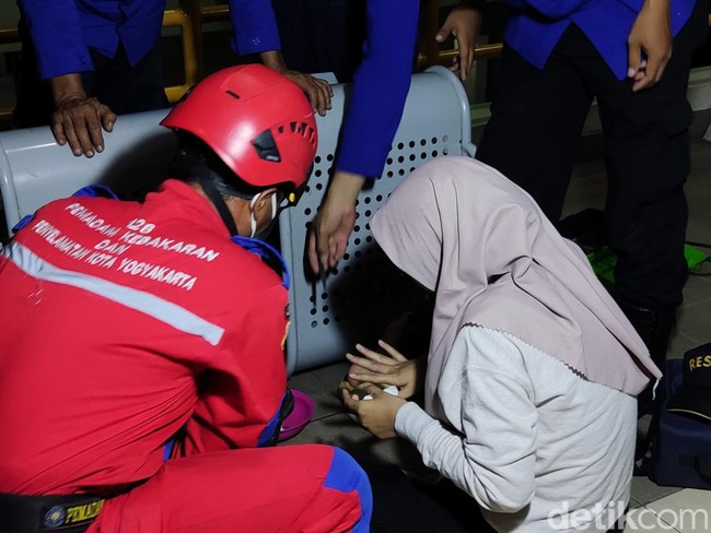 Petugas Damkar Kota Jogja, Bondan Isantoso, mengatakan butuh waktu sekitar satu jam untuk melepaskan jari mahasiswi itu. "Hampir 60 menit, bisa lepas sekitar pukul 18.25 WIB. Celahnya sempit sekali, kita harus pakai kawat kecil untuk menyangga, melindungi jarinya," kata Bondan.