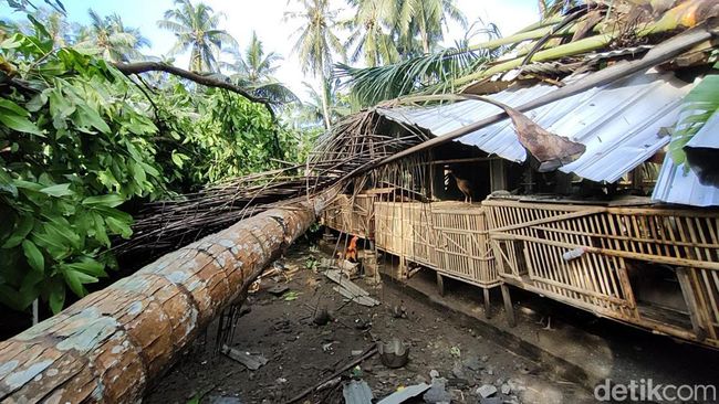 "Semalam itu jalan masuk ke desa itu enggak bisa, akses baru bisa dibuka itu sekitar jam 08.00 tadi. Dari PMI yang membuka akses jalan sampai jam 11 malam. Itu saja yang sebelah tengah masih utuh itu, jadi pohon kelapa tumbang ada tiga pohon di sana," sambungnya.