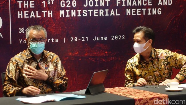 Hal itu diungkapkan Tedros dalam sesi jumpa pers dengan wartawan. Awalnya, Menteri Kesehatan RI Budi Gunadi Sadikin menceritakan soal apa saja yang dibahas dalam agenda pertemuan menteri kesehatan anggota G20 hari ini.