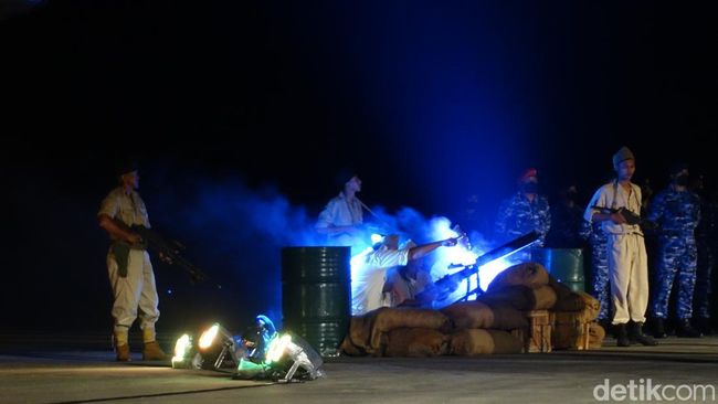 Itu merupakan gambaran aksi teatrikal dalam napak tilas Peringatan Hari Bhakti TNI AU ke-75 di Lanud Adisutjipto, Maguwoharjo, Sleman, Jumat (29/7/2022). Hari Bhakti TNI AU bertujuan untuk mengenang kembali peristiwa penting bagi prajurit TNI Angkatan Udara.