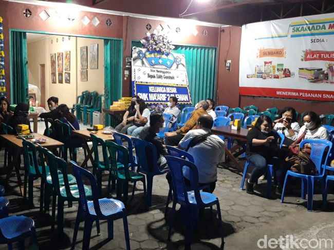 Jenazah Eddy Gombloh saat ini disemayamkan di rumah duka, Dusun Sono Wetan, Merdirejo, Kapanewon Tempel, Kabupaten Sleman, DIY.