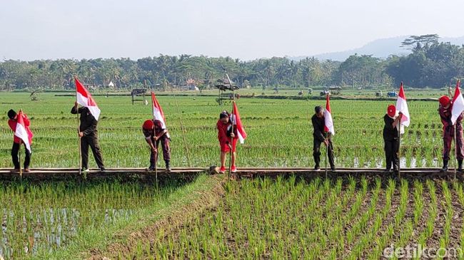 "Pemasangan bendera di sawah ini jadi hal yang berbeda ya, dan saya senang saja melihat banyak bendera berkibar di sawah-sawah seperti ini," ujarnya.