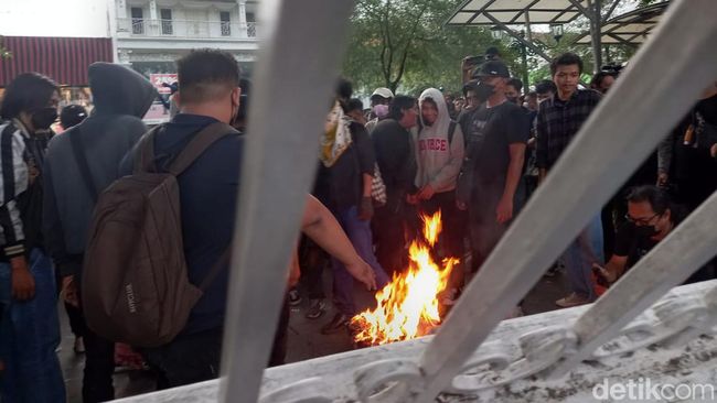 Sembari menunggu, massa membakar ban di depan gedung DPRD. Dalam orasinya massa menuntut adanya perwakilan DPRD DIY keluar dan menemui massa.