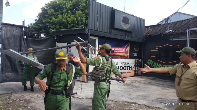 Satpol PP bersama sejumlah aparat gabungan menyegel sebuah bar kafe di kawasan Babarsari, Sleman, Daerah Istimewa Yogyakarta (DIY). Kepala Satpol PP Sleman, Shavitri Nurmala Dewi, mengatakan tidak ada perlawanan dalam prosesnya.