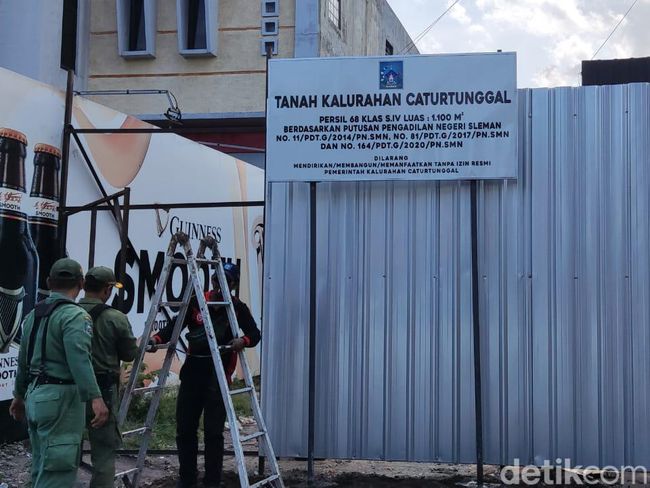 Di lokasi juga terdapat plang penyegelan bertuliskan 'Tanah Kalurahan Caturtunggal' dari Kalurahan Caturtunggal. Adapun tanah yang disegel itu berstatus persil 68 klas S.IV, luasnya sekitar 1.100 meter persegi. Penyegelan itu berdasarkan putusan Pengadilan Negeri Sleman.