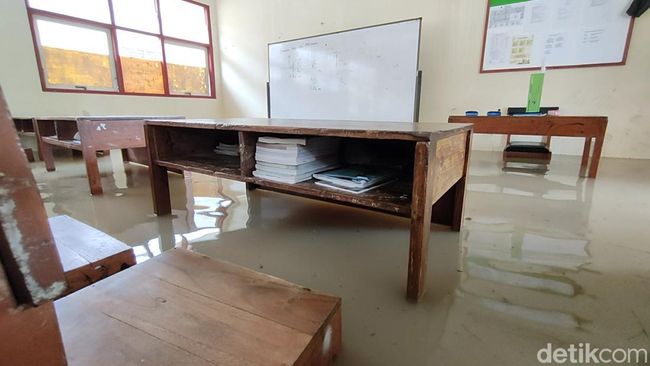 Dari pantauan detikJateng di lokasi, genangan air setinggi lutut orang dewasa atau berkisar 60 cm terlihat memenuhi kompleks sekolah tersebut. Air juga menggenangi sejumlah ruang kelas sehingga tidak dimungkinkan untuk kegiatan belajar mengajar.