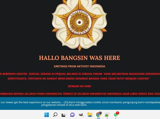 Dilihat detikJateng, Senin (24/10) pukul 09.00 WIB, situs beralamat fib.ugm.ac.id itu diduga masih dalam kendali hacker. Di atas laman tersebut, pihak hacker meninggalkan pesannya.
