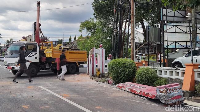 Saat proses evakuasi puing-puing gapura, jalanan sempat ditutup. Namun saat ini telah dibuka kembali.