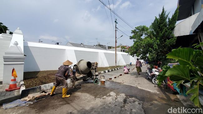 Pantauan detikJateng, Selasa (15/11), area tembok beteng yang dipugar itu berada di Jalan Kenekan tepatnya di sisi utara Jalan Wijilan yang menjadi sentra gudeg.