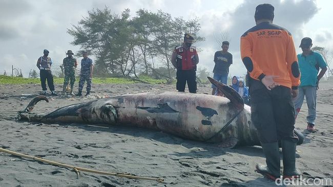 "Untuk kronologi awal, tadi malem personil Tim Bugel mendapat laporan dari warga sekitar jam 20.30 WIB, ada ikan yang berukuran cukup besar menepi di perairan Bugel, kemudian rekan dari Bugel kroscek ke lokasi. Setelah dicek memang betul A1, namun sudah mati," ucap Koordinator Satlinmas Rescue Istimewa Wilayah V Kulon Progo, Aris Widiyatmoko saat ditemui di lokasi penemuan, Rabu (7/12/2022).