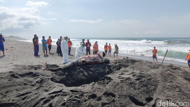 "Terus untuk pemeriksaan lebih lanjut tadi saya ngambil sampelnya hepar atau hati, kemudian ginjal, terus usus. Itu nanti kita masukan ke laboratorium BKSDA guna mengetahui penyebab pasti kematian paus ini," imbuhnya.