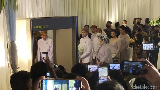 Pantauan detikJateng, Jumat (9/12/2022), Presiden Jokowi beserta rombongan tiba pukul 19.08 WIB. Nampak ada Jan Ethes dan Sedah Mirah di depan rombongan. Disusul Jokowi, Iriana, Kaesang, Gibran dan sang istri, Kahiyang dan suami. Nampak semua cucu Jokowi juga ikut serta.